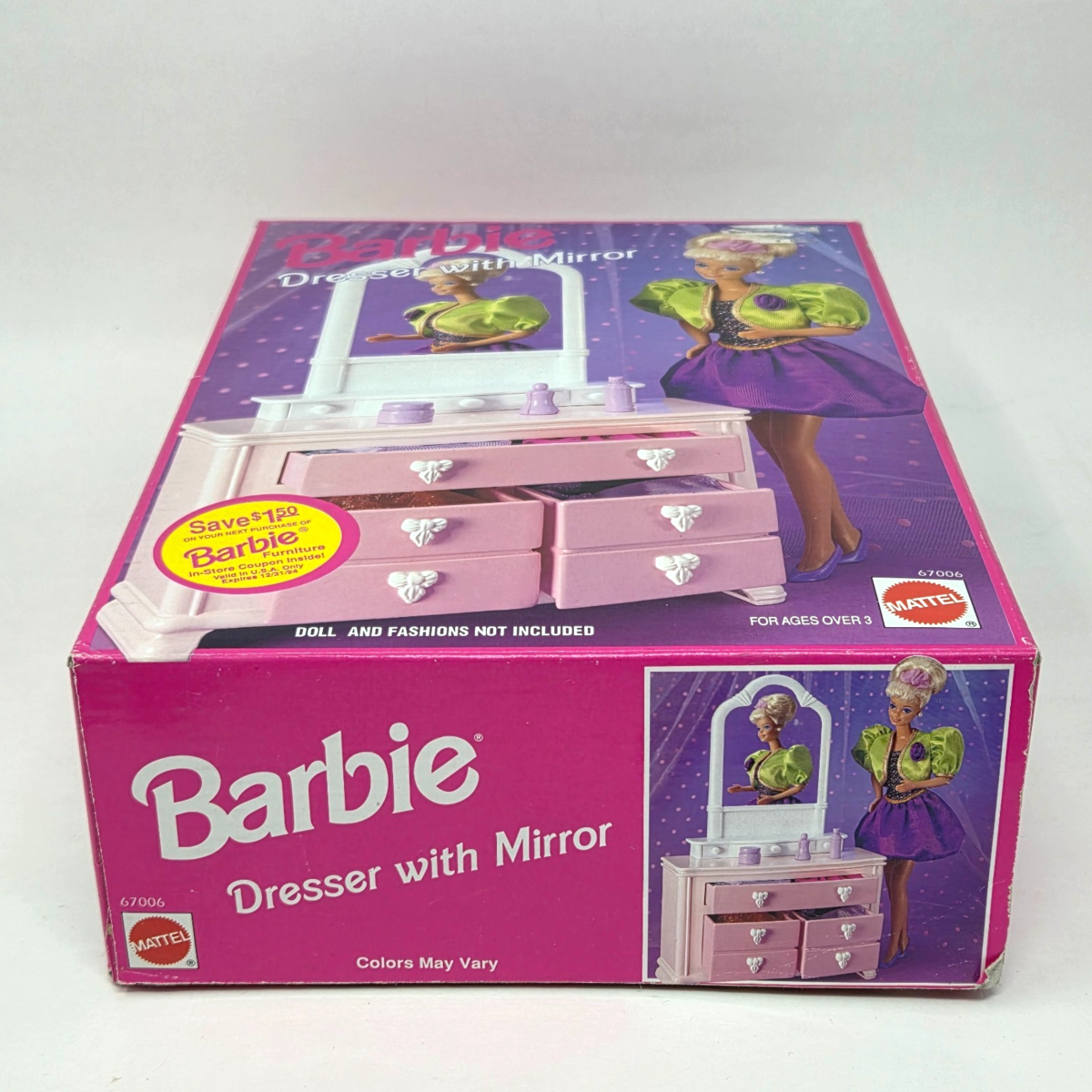 VINTAGE 1993 BARBIE DREAM HOUSE PINK DRESSER + MIRROR MATTEL # 67006 W BONUS TV