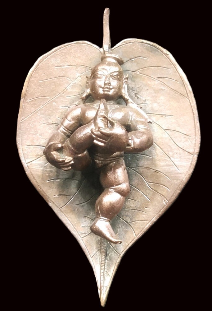Bal Krishna On Leaf In Pure Solid Copper