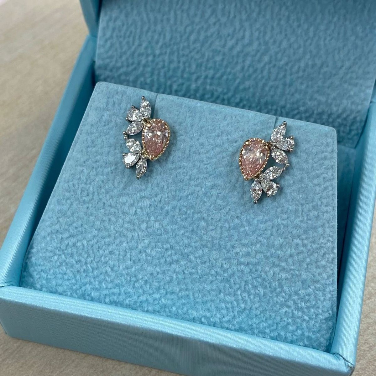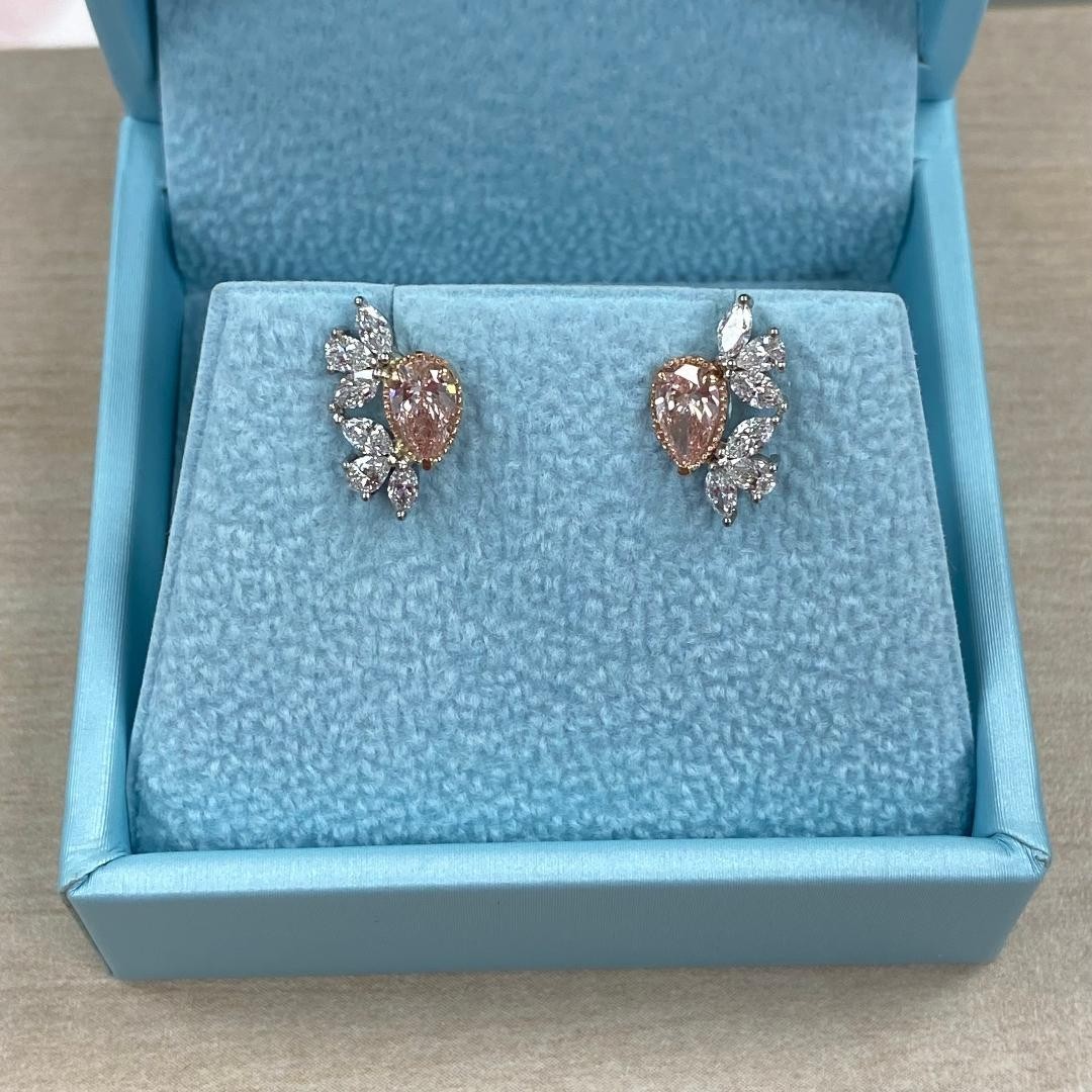 1.32 TCW Pera Laboratrio Cresciuta Decorato Intensi Diamante Rosa Orecchini 14k