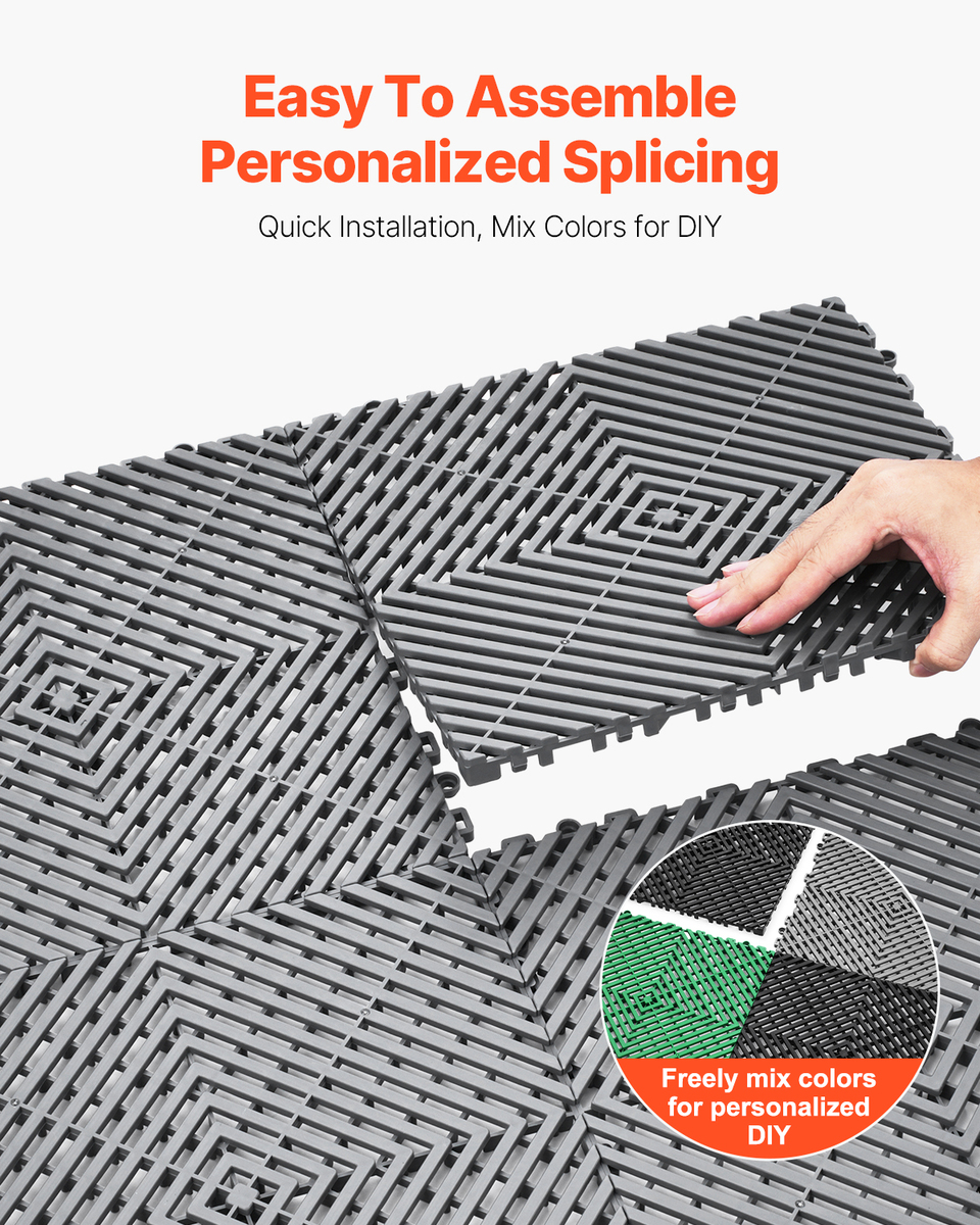 Customizable Layout: This drainage floor mat allows for creative customization! Mix and match different colors to create a unique DIY design, adding a personal touch to your garage or workspace.