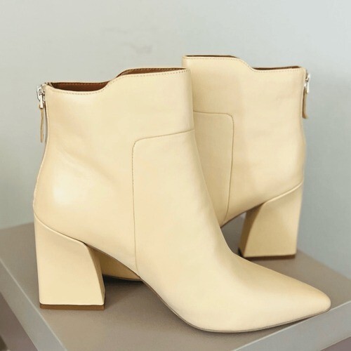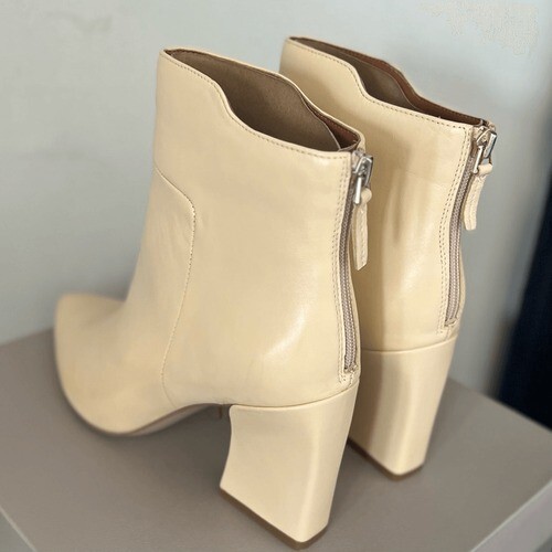 FRANCO SARTO Venture Leather Bootie Boot, Beige/White, Block Heel, Size 9, NWT