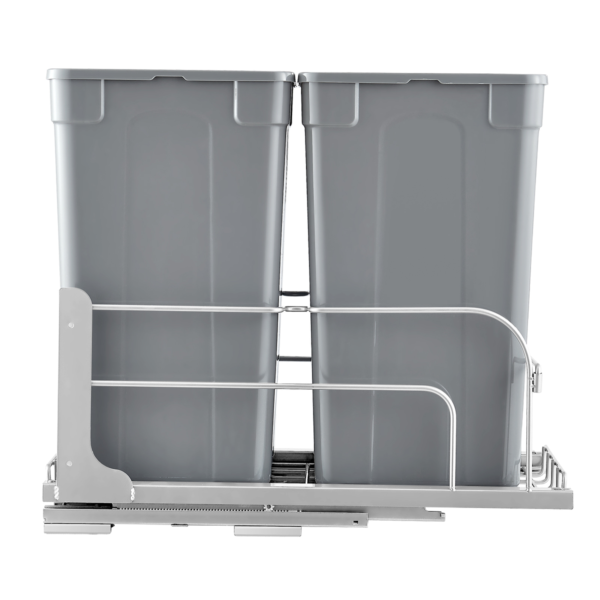 VEVOR Pull-Out Trash Can, 27 QT x2 Double Under Mount Kitchen Container, Grey