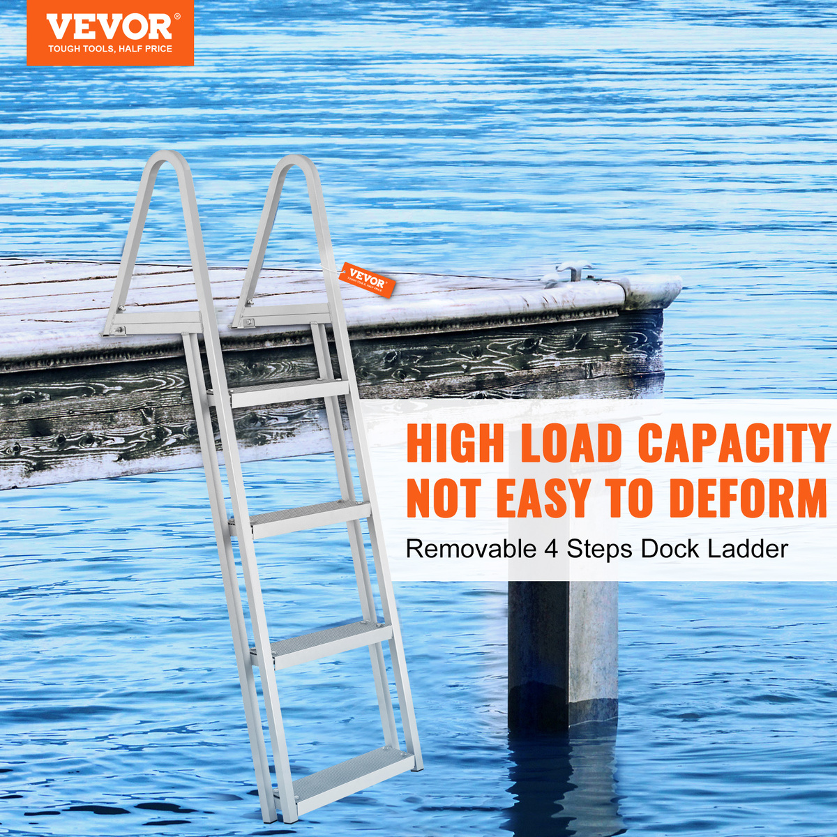 VEVOR Dock Ladder, Removable 4 Steps, 350 lbs Load Capacity with 4'' Wide Step