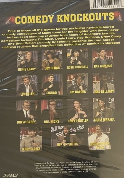 Description of item: Get ready for nonstop laughs with Comedy Knockouts, a 2-disc collection packed with rare, early stand-up routines from some of America?s most beloved comedians. Filmed at Rascals Comedy Club, this set features Ray Romano, Rosie O?Donnell, Denis Leary, Bill Bellamy, Drew Carey, Tim Allen, Sinbad, Jeff Foxworthy, and many more delivering their breakout performances. Enjoy classic bits, signature styles, and unforgettable moments from the comics who went on to become major stars. A must-have addition for stand-up fans and collectors.