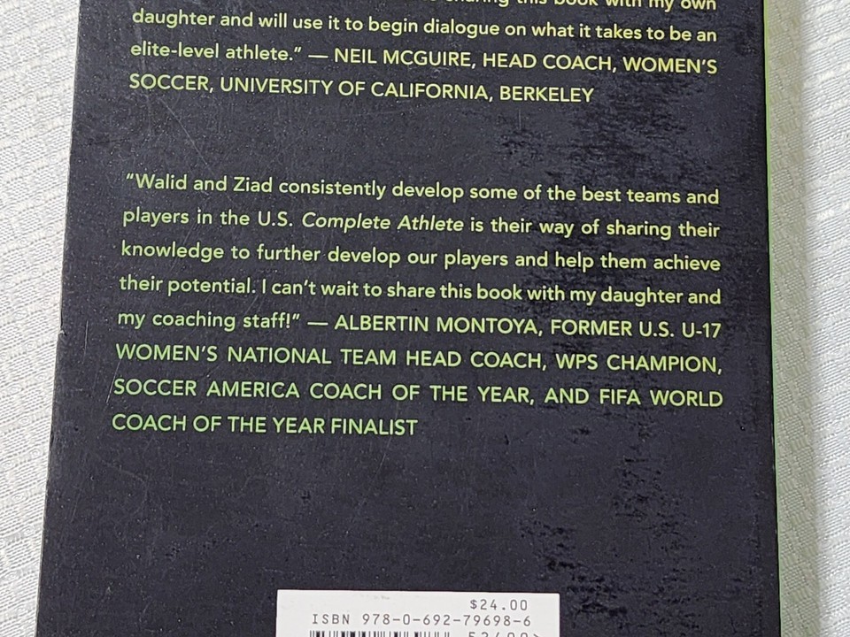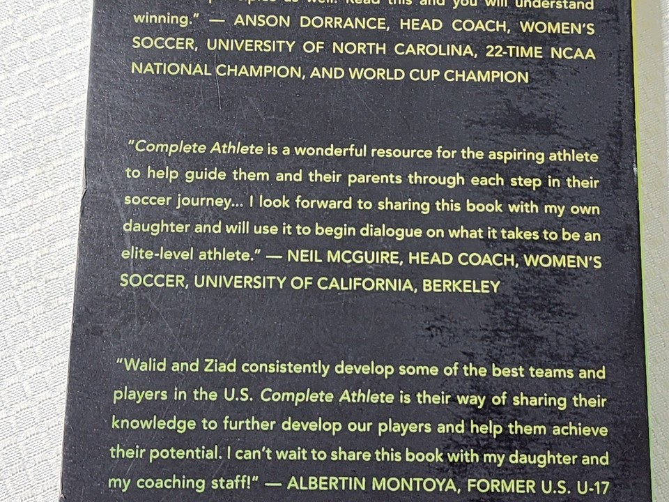 item: "Complete Athlete" is a guide aimed at aspiring female soccer players, featuring insights from renowned soccer figures like Mia Hamm. Authored by Walid Khoury, Ziad Khoury, and Don Yaeger, this book shares valuable knowledge from top-tier player development environments. It focuses on both the technical skills needed to excel at the top levels of women's soccer and the character traits that define true champions. Endorsed by coaches and athletes alike, the book is praised for its comprehensive approach and practical advice, which is deemed essential for young athletes looking to make significant strides in their soccer careers.