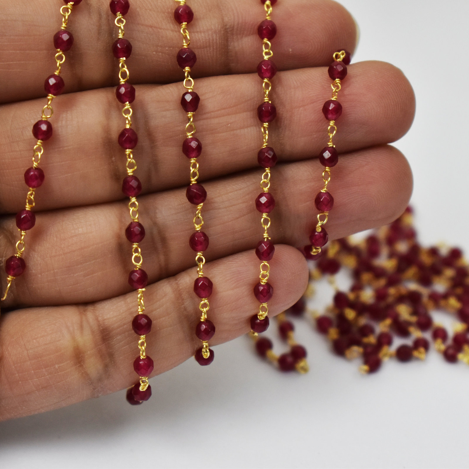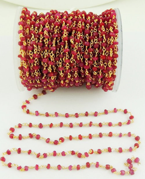 1Feet Ruby Beads-Rosary Beaded Chain-3.5-4 and similar items