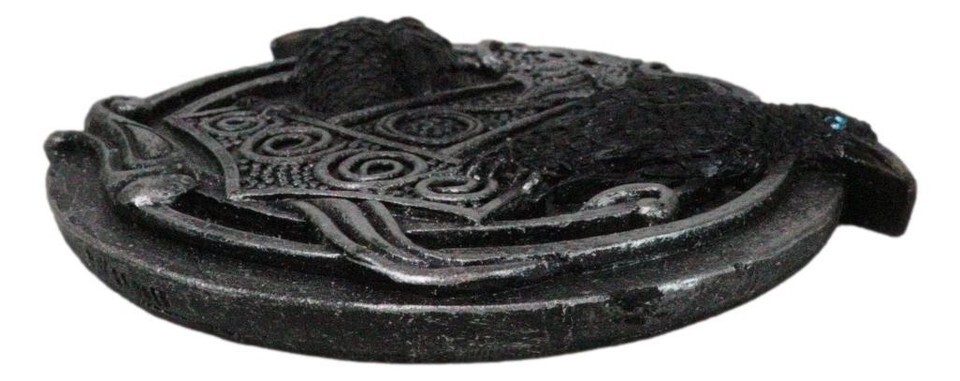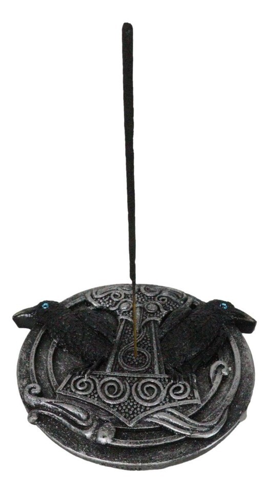 Norse Viking Knotwork Thor Hammer Mjolnir With Black Ravens Incense Burner