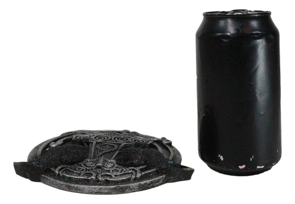 ? Embrace the power of Norse mythology with our Viking Knotwork Thor Hammer Mjolnir Round Disc Incense Burner, featuring intricate designs and striking black ravens. This stunning piece pays homage to Thor, the god of thunder, while symbolizing strength and protection. Crafted with detailed knotwork, this incense burner not only serves as a functional holder for your favorite incense but also adds a bold statement to your decor.