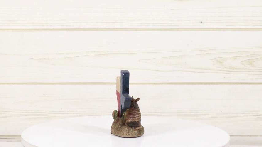 ? This Texas Map With Armadillo Desktop Sculpture is made of polyresin, hand painted and polished individually.