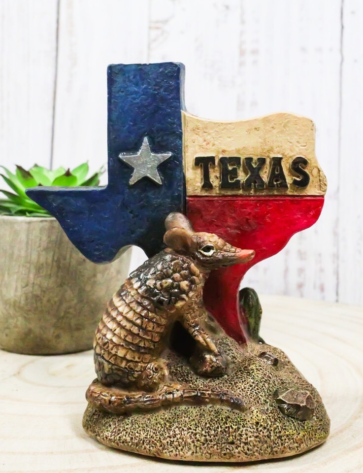 ? Capture the spirit of the Lone Star State with our Lone Star State of Texas Map with Armadillo Figurine Desktop Sculpture. This meticulously crafted desktop sculpture brings together the iconic Texas map with the charm of an intricately designed armadillo. Celebrate your Texan pride and add a touch of Southwestern flair to your workspace or home decor. The fine details and quality craftsmanship make this figurine a unique and eye-catching piece that showcases your love for the Lone Star State.