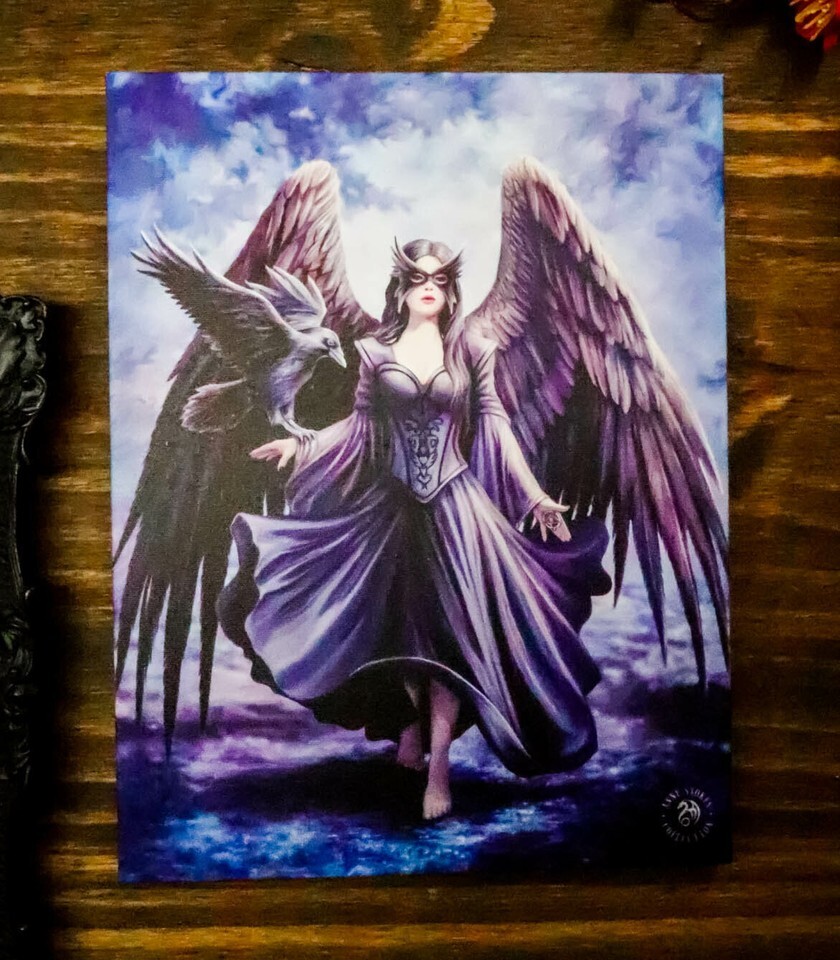 Ebros Anne Stokes Raven Crow Dark Angel Fey Wood Framed Picture Wall Decor