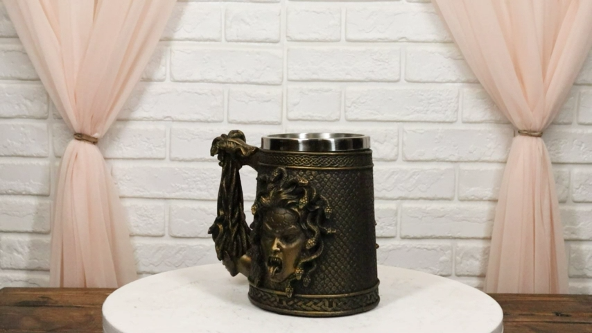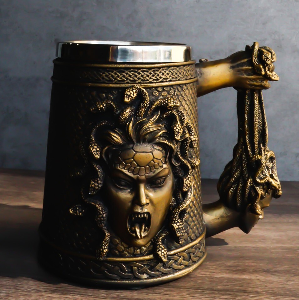 ? Introducing the Medusa Mug - the perfect addition to your morning coffee routine! This stunning mug features a beautifully detailed depiction of the mythical Gorgon, Medusa, with her signature snake hair and piercing stare. The Medusa Mug makes a great gift for any mythology enthusiast or lover of unique and eye-catching drinkware. Don't settle for a boring mug - let the Medusa Mug add a touch of mystique to your mornings!