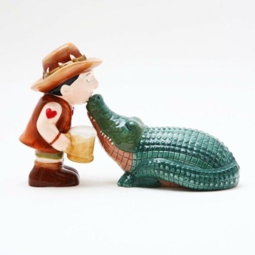 CROCODILE DUNDEE DRUNK ATTRACTIVES CERAMIC MAGNETIC SALT PEPPER SHAKERS