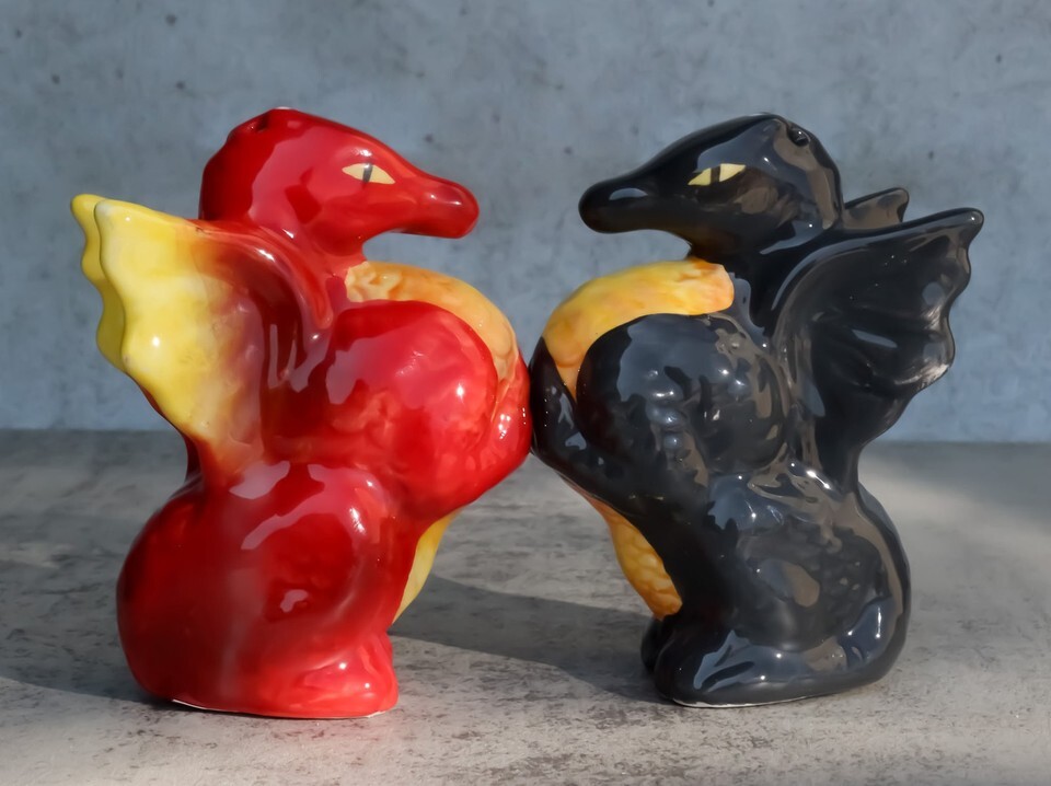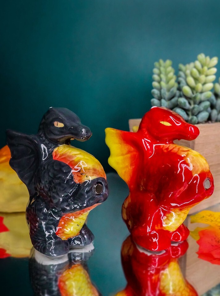 ? They are magnetically attracted to each other. Our brand of Attractives! home decor salt pepper shakers now offer this YinYang Day/Night Dragons set to add to our extensive collection of magnetic salt pepper shakers! Gift this set away to your loved ones, collect these for your hobby or even use them for your party as a table decorative accessory!
