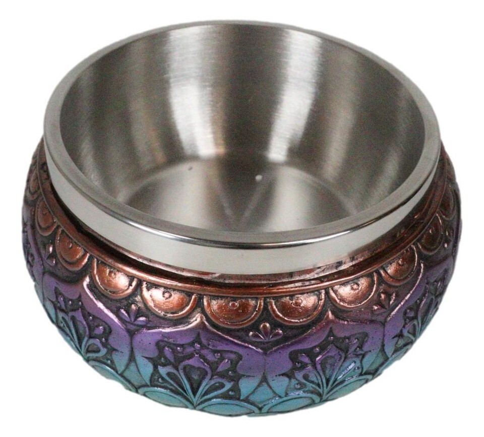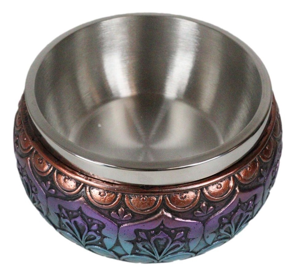 ? This Chakra Mandala Smudging Bowl is made of durable composite resin, hand painted and polished individually. The interior bowl is lined with stainless steel.