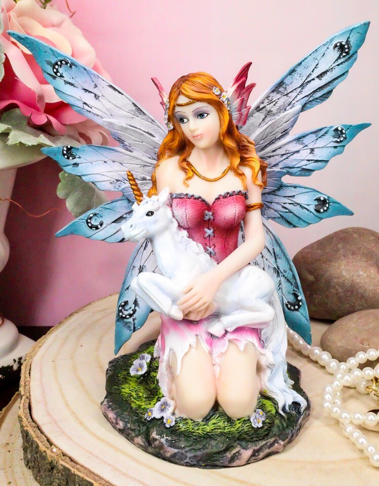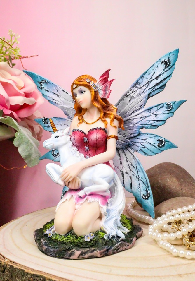 ? This Damsel Fairy with unicorn figurine is made of premium grade cold cast polyresin, hand painted and polished individually.