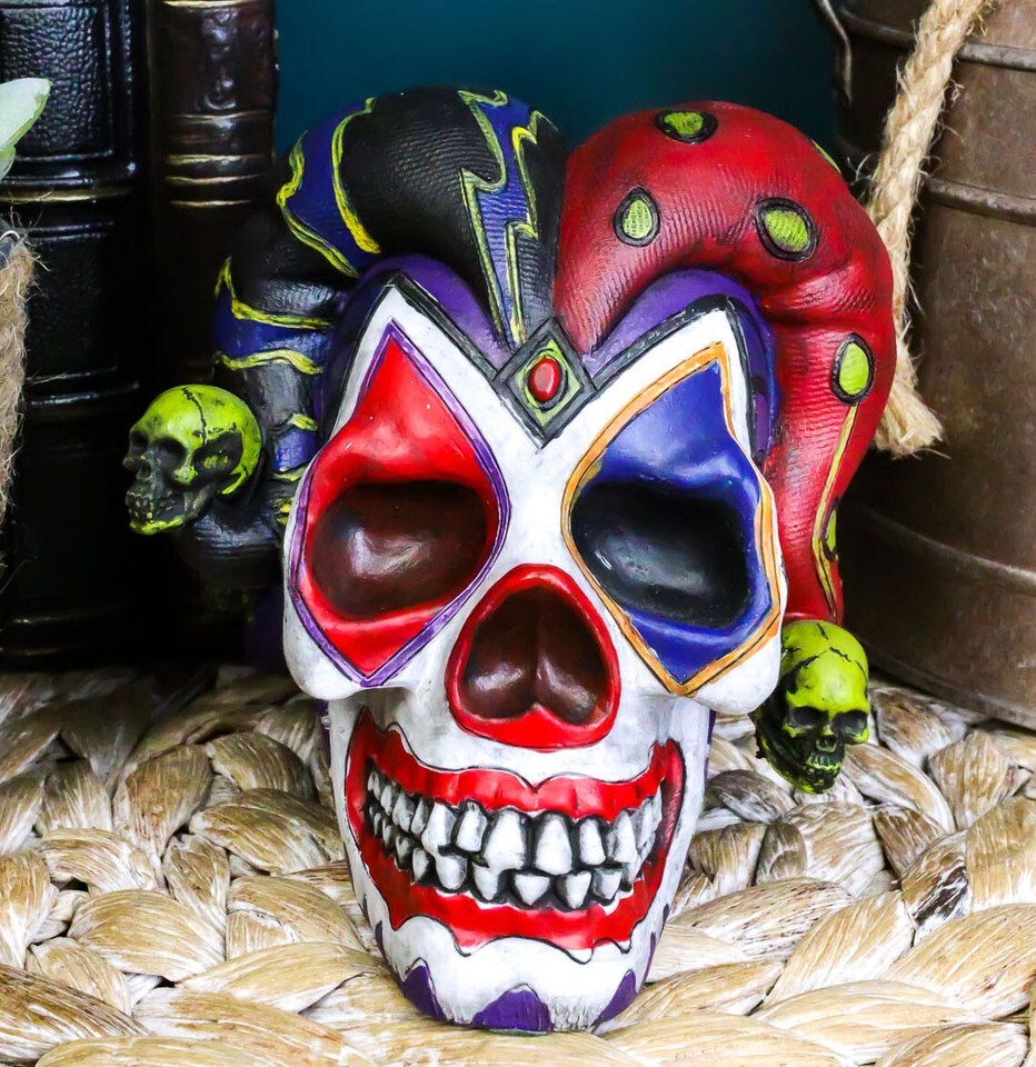 Ebros Jester Clown Harlequin Joker Skull Figurine 4"H Cool DOD Skeleton Collectible