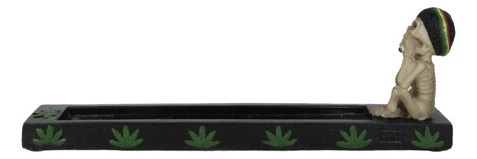 ? This Day Of The Dead Rasta Skeleton Incense Burner is made of polyresin, hand painted and polished individually.