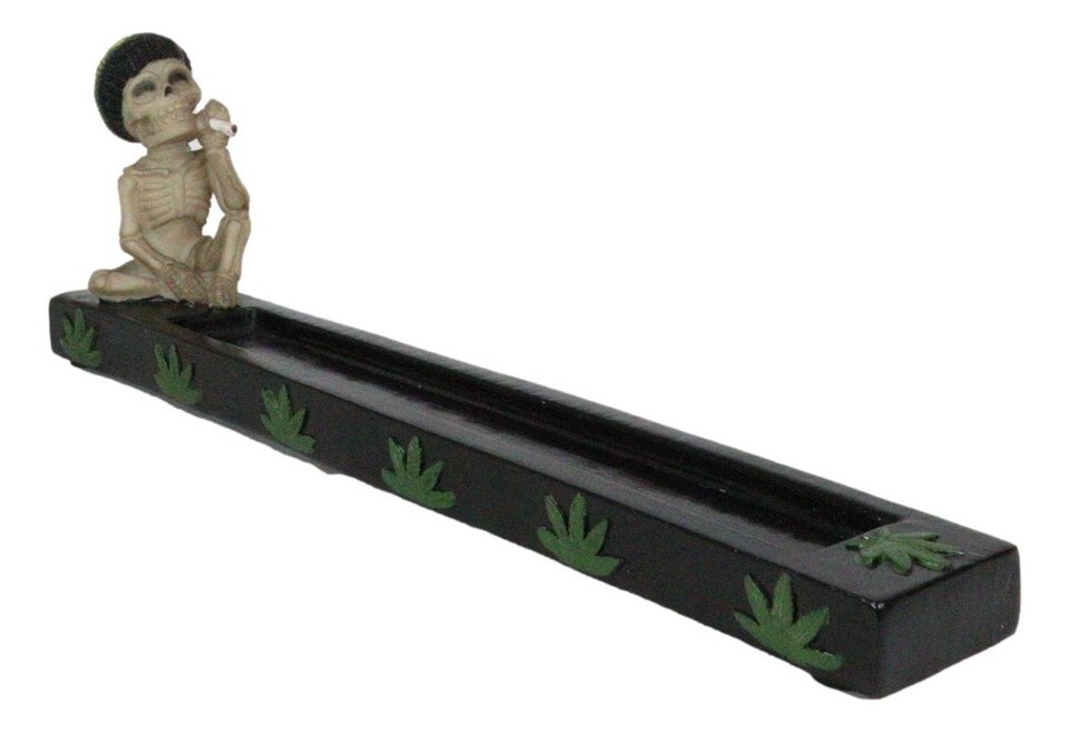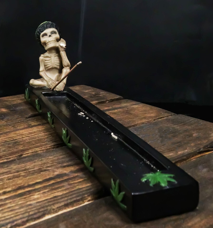 ? Display it or burn your favorite incense and enjoy the sweet aroma of your favorite scent with this awesome rastafarian skeleton inspired holder. This champ is taking it slow and easy, positive vibrations and love only... that is the way to approach life. A great conversation piece that also serves a purpose.