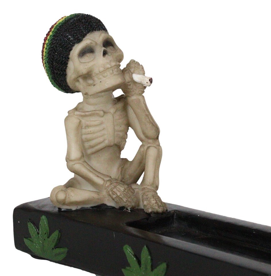 Ebros Good Vibes Day of The Dead Reggae Rasta Skeleton Smoking Stash Incense Burner