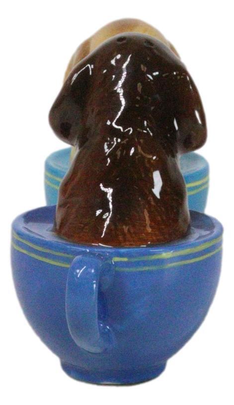 Ceramic Chocolate And Fawn Teacup Labrador Puppy Dogs Salt Pepper Shakers Set