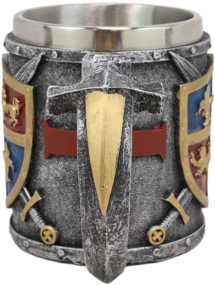 Ebros Lion And Fleur De Lis Coat Of Arms Crusader Knight Drinking Mug Cup Decor