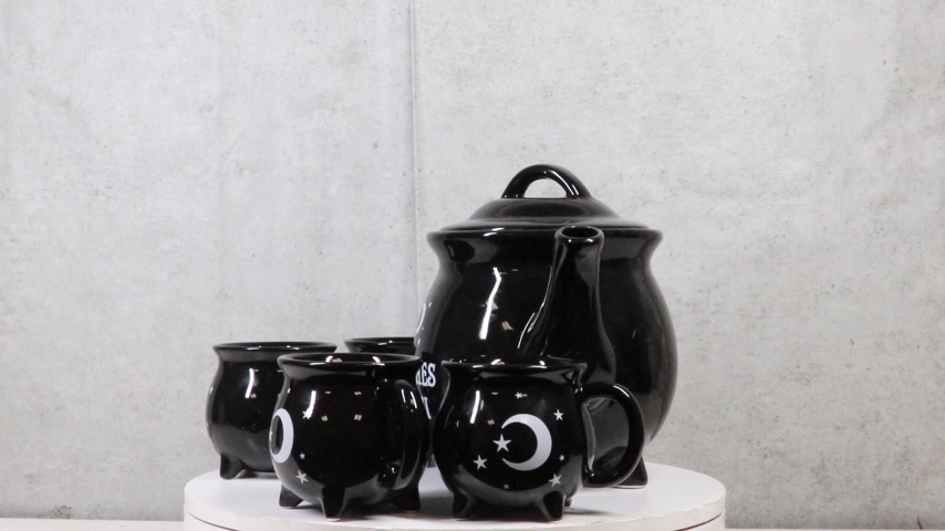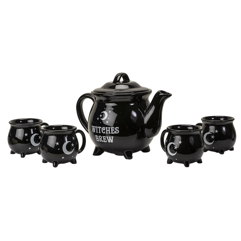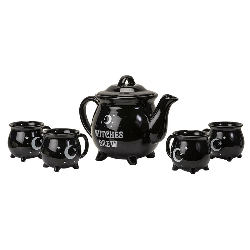 ? This enlarged version of our popular Witches Brew Teapot hold multiples cups of tea. A matching set of four cauldron tea cups with little cauldron legs finishes off this mystical tea set that's sure to catch everyone's eye.