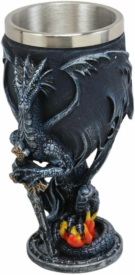 Ebros Blue Divine Fire Winged Dragon With Excalibur Sword Wine Goblet Chalice Cup 7oz