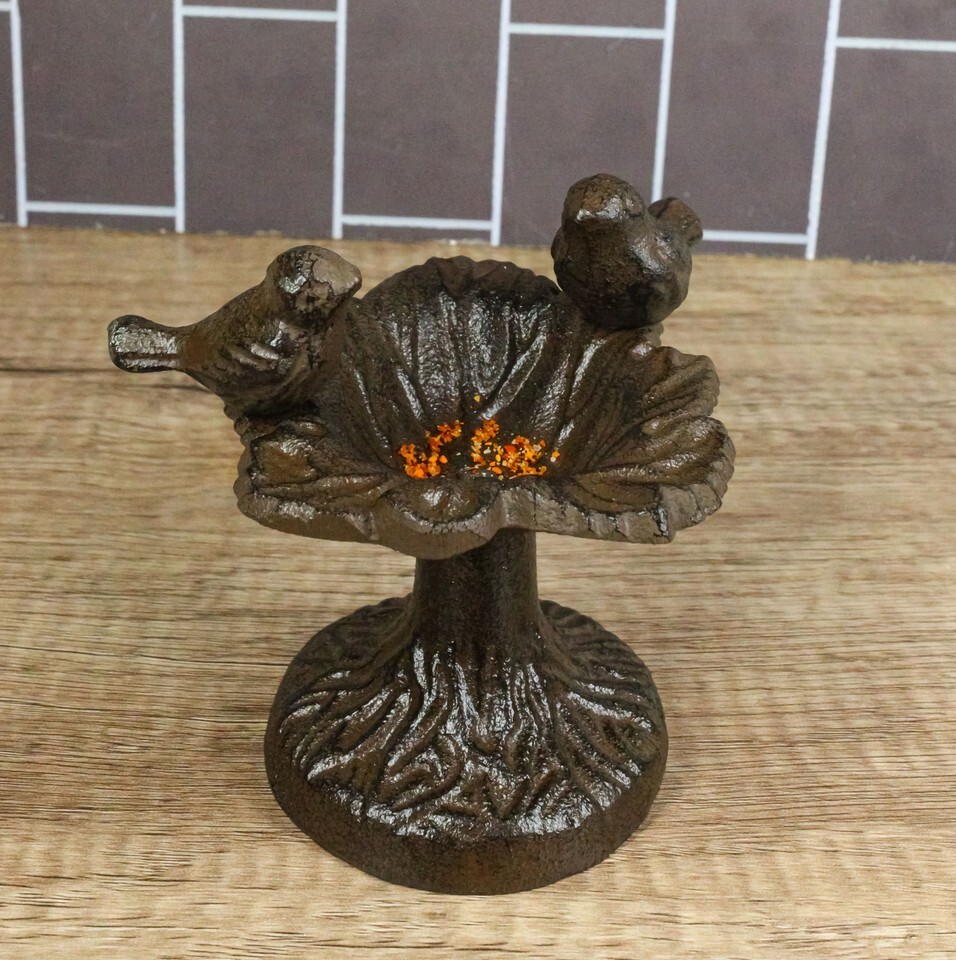 Cast Iron Rustic Whimsical Two Birds On Tree Bird Feeder Bath Small Sculpture