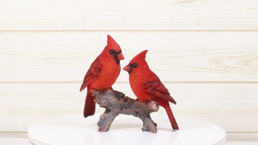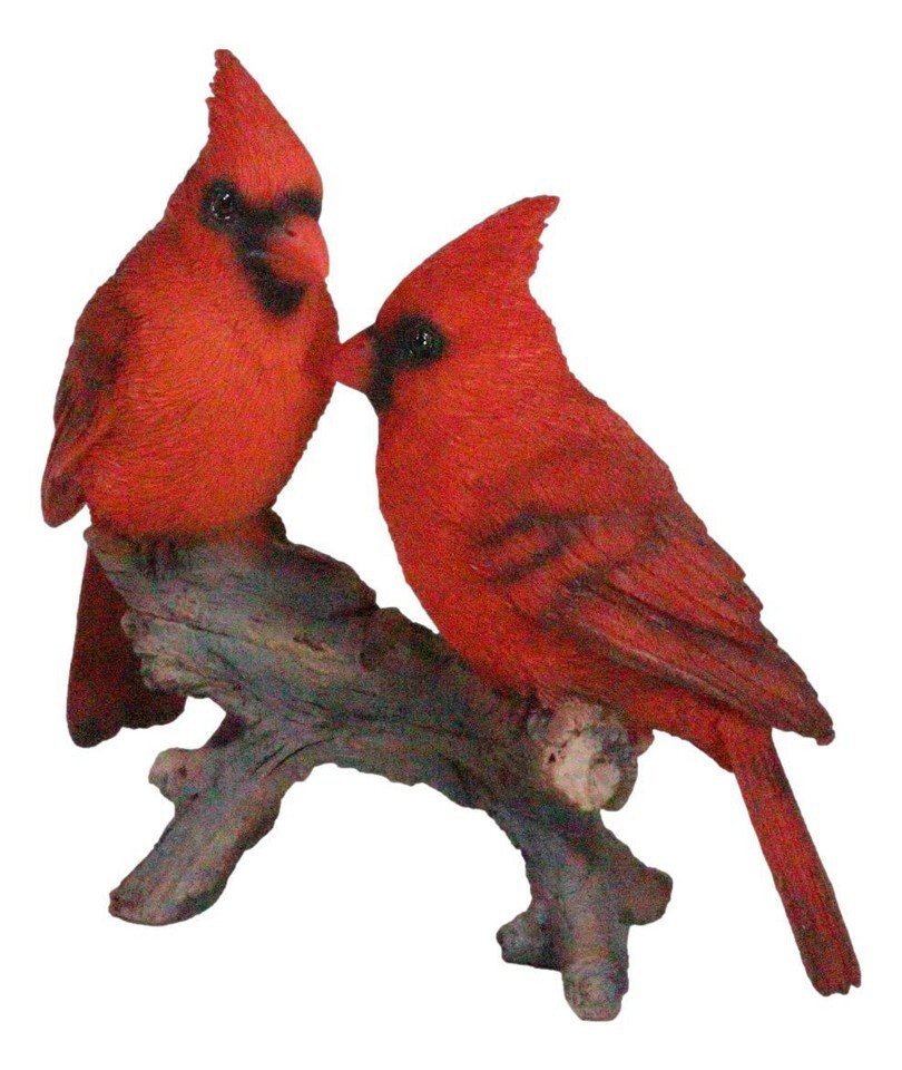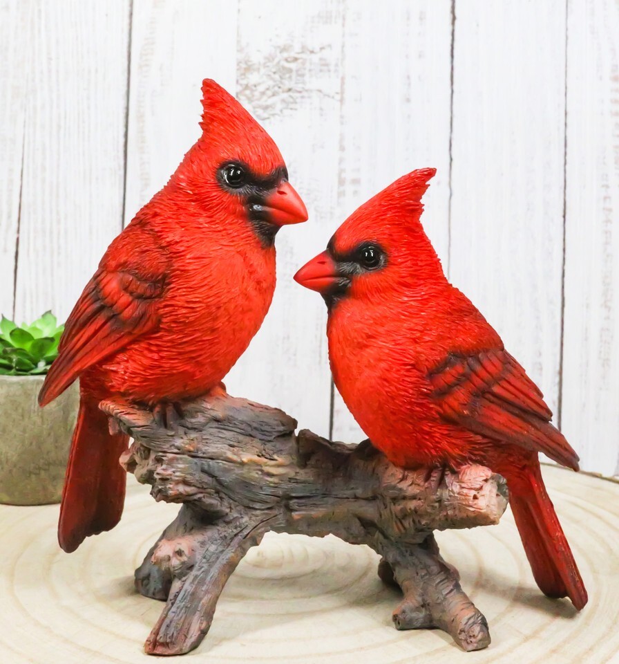 Wildlife Nature 2 Northern Red Cardinal Birds Perching On Branch Figurine