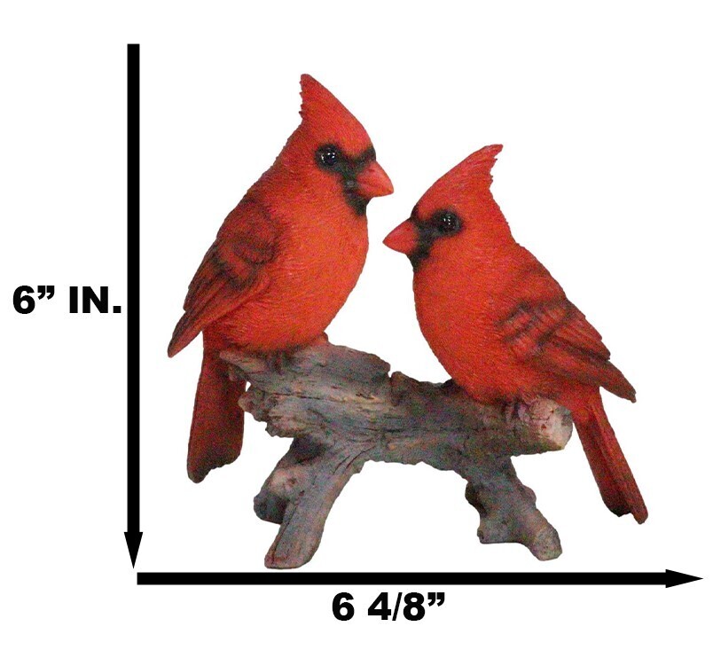 ? This Red Cardinal Birds On Branch Sculpture measures 6.25" tall, 6.5" wide and 2.5" deep. The bird sculpture weighs about 13 ounces.