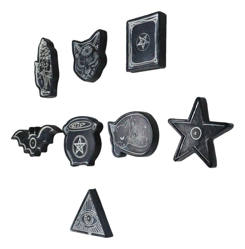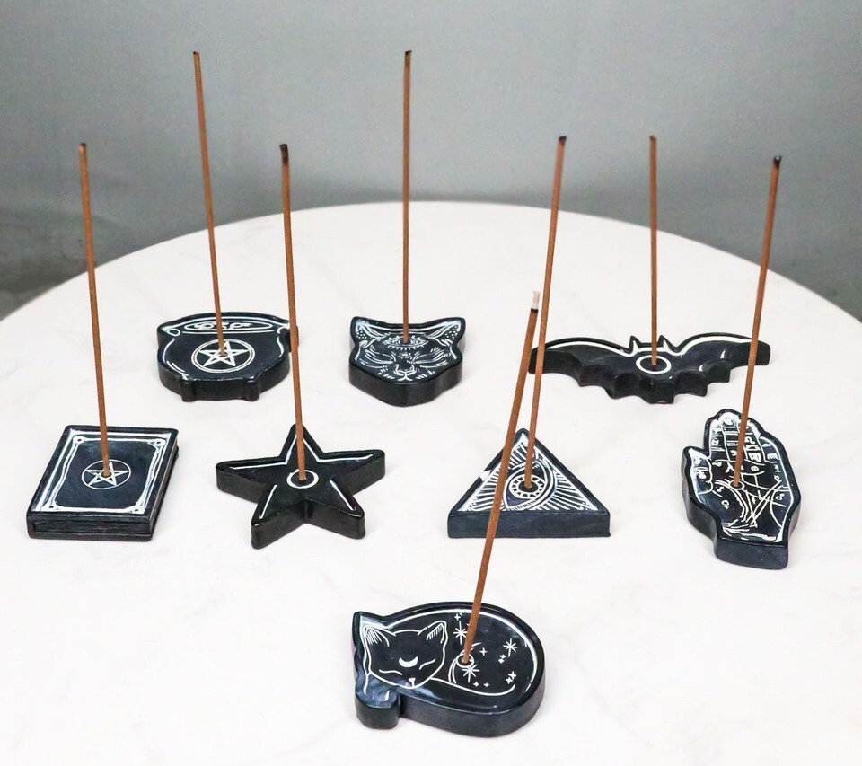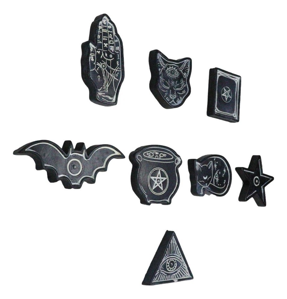 Set Of 8 Wicca Pentagram Evil Eye Hamsa Cats Bat Cauldron Incense Stick Holders