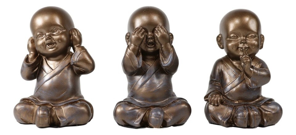 See Hear Speak No Evil Wise Shaolin Kung Fu Little Monks Set of Three Figurines