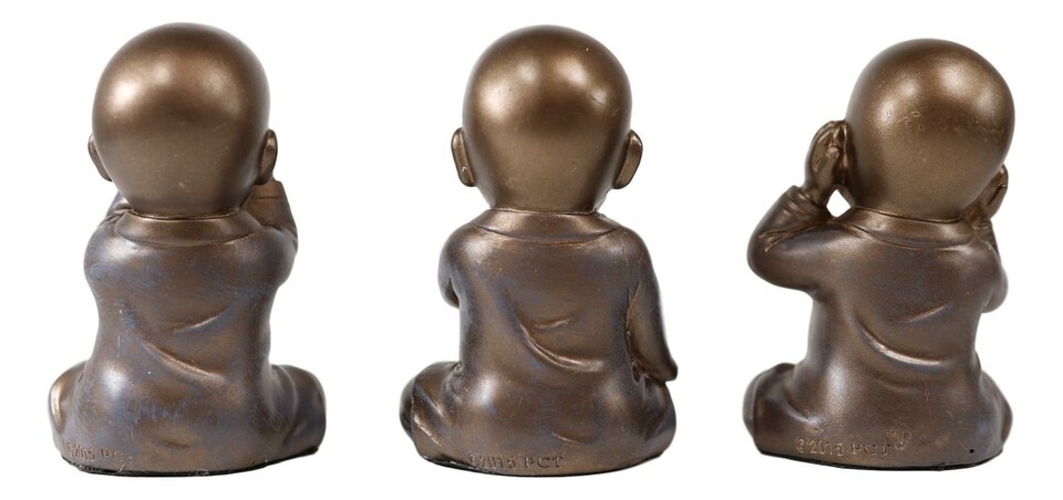 ? These figurines remind us of the virtue of being cautious and intentional in what we hear, speak and see. These are excellent ways to guard our soul and keep it pure. Each monk is sitting in meditation style, acting the age old fable of see hear speak no evil.