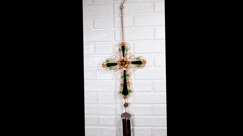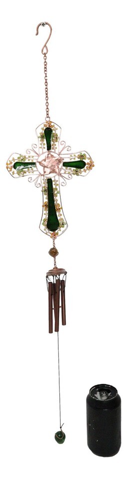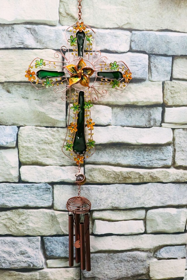 ? This Beautiful Christian Green Shamrock Floral Cross Wind Chime is made of Aluminum and Artificial Gemstones/crystals, hand painted and polished individually. Color Tone May Vary from pictures.