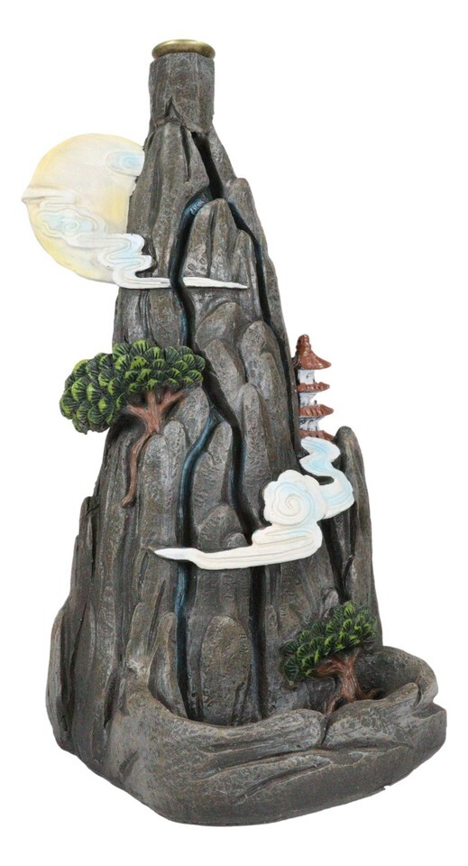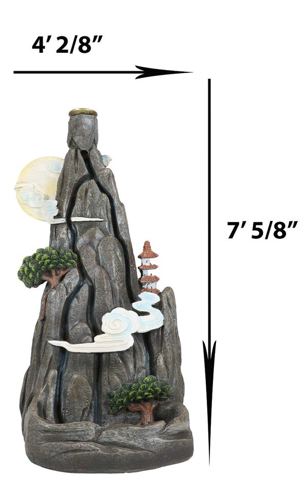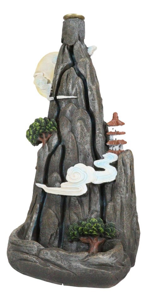 Ebros Feng Shui Rocky Mountain Top Buddhist Pagoda Temple Backflow Cone Incense Holder