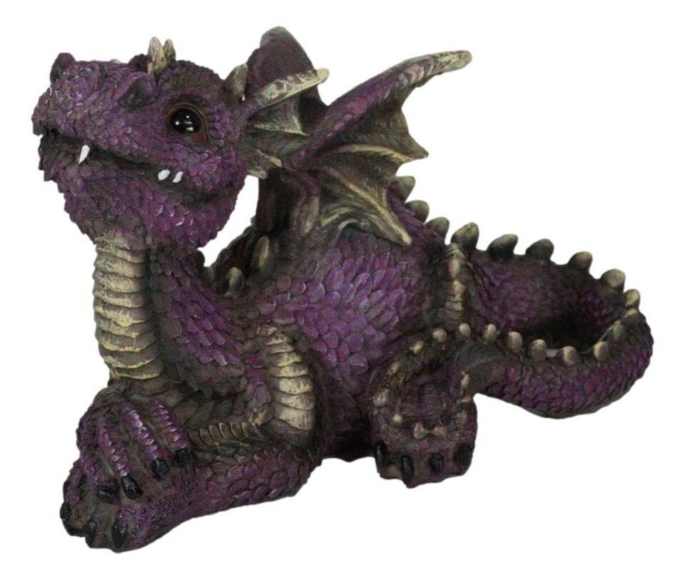 ? Introducing the captivating Purple Garden Dragon Figurine, meticulously crafted from premium designer composite resin. Each piece is carefully hand-painted and polished individually, showcasing an exceptional level of artistry and craftsmanship. Color tone may vary slightly, adding a unique touch to each piece. It is a mesmerizing centerpiece and an exquisite addition to your dragon-themed collection.