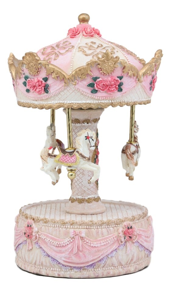 Carnival Merry Go Round Princess Pink Royal Horse Ponies Musical Carousel Statue