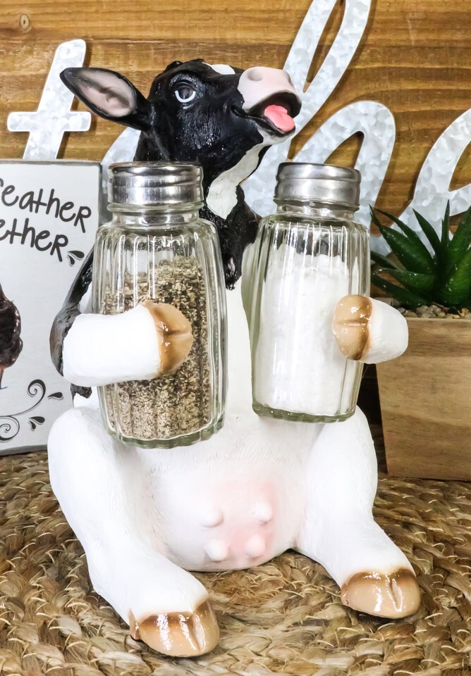 Ebros Farm Grassland Bovine Cattle Cow Moo Moo Salt Pepper Shakers Holder Set