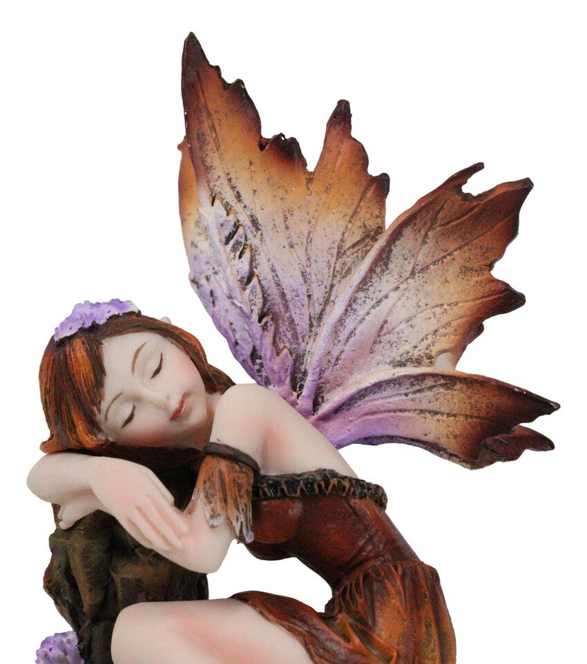 ? Add a touch of autumn magic to your home with this Autumn Fall Girl Fairy Garden Figurine. Dressed in a beautiful amber and maroon dress, this serene fairy is peacefully sleeping amidst the fall foliage. Perfect for fairy gardens or as a charming accent to your decor, this enchanting figurine captures the warmth and beauty of the fall season, bringing a cozy, whimsical touch to any space.