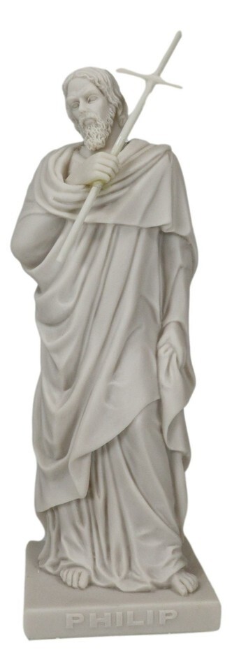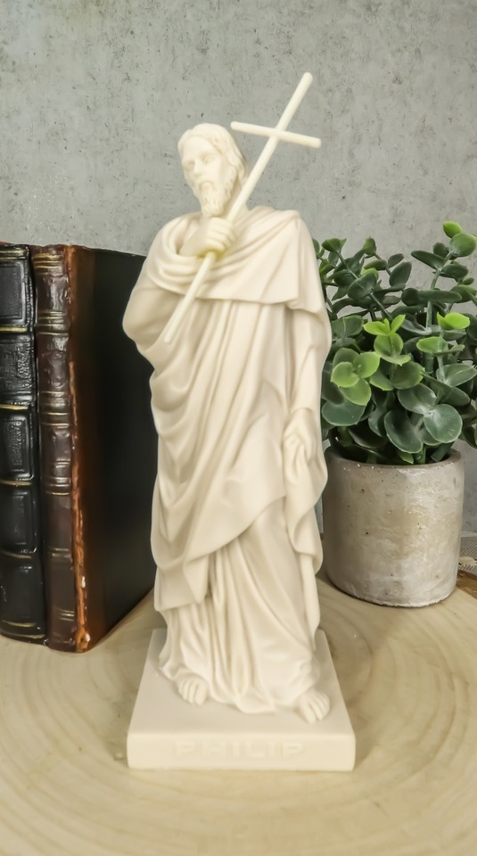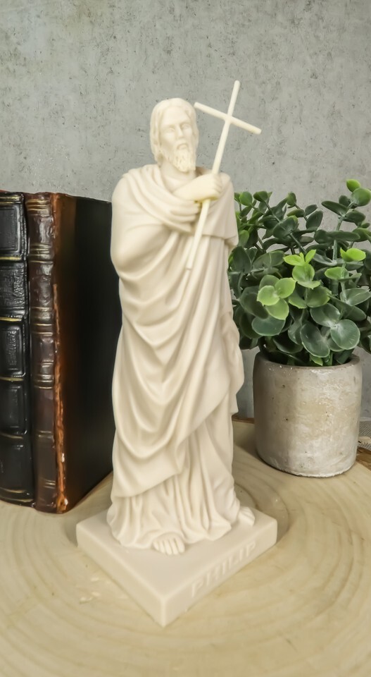 ? This Copenhagen Museum Reproduction Of Apostle Saint Philip Statue is made of cold case polyresin, hand painted and polished individually. The finish of the sculpture is white with yellowish tone.