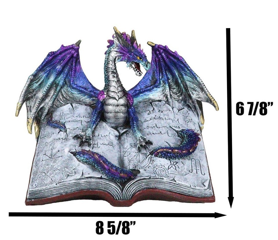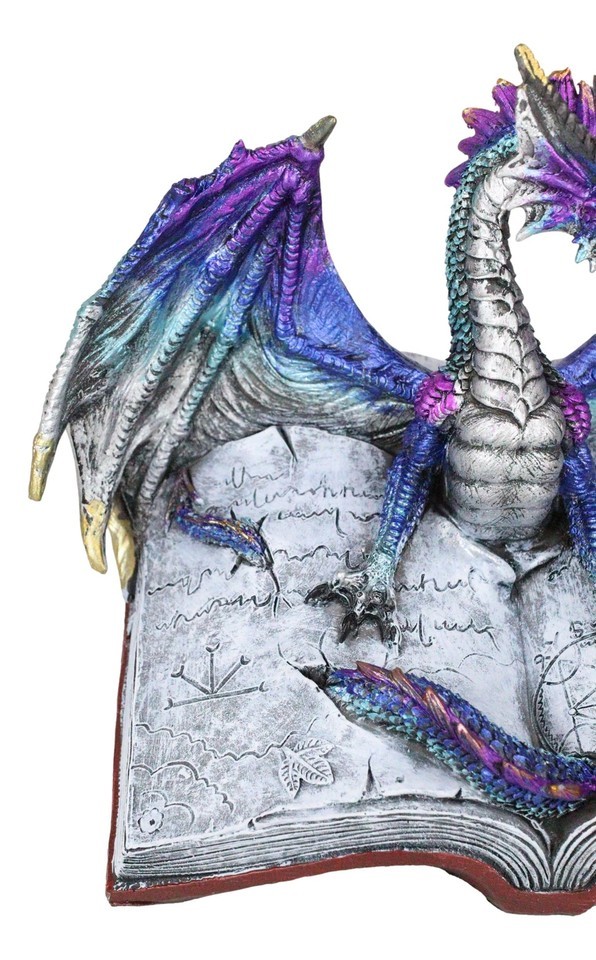 Guardian Of Bibliography Purple Blue Dragon Emerging Out Of Spell Book Figurine