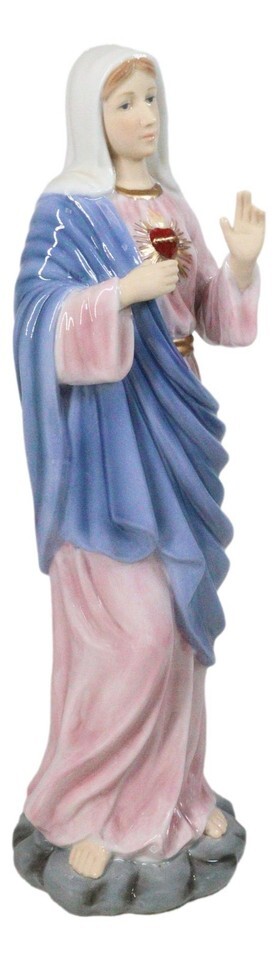 ? This Sacred Heart Of Mary Sculpture is made of bone china porcelain, hand painted and polished. Color Tone may vary