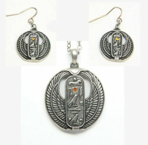 MYSTICA FASHION EGYPTIAN WINGED CARTOUCHE DEITY NECKLACE EARRINGS SET