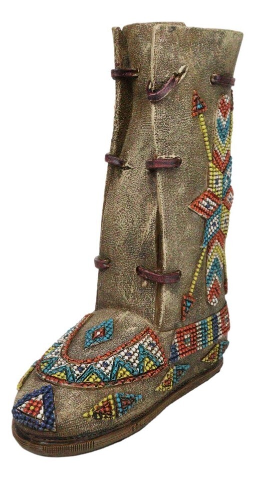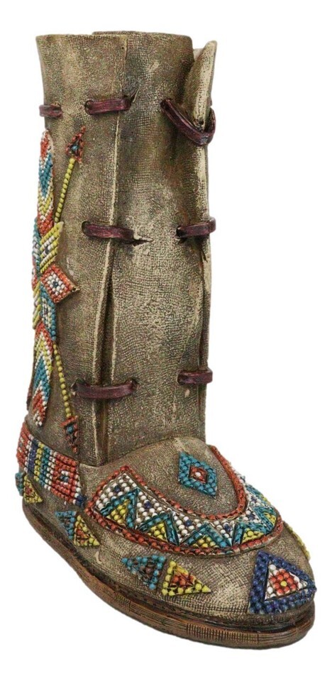Southwestern Tribal Native Arrows Indian Moccasin Faux Leather Boot Vase Decor