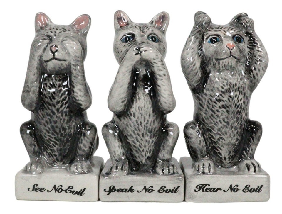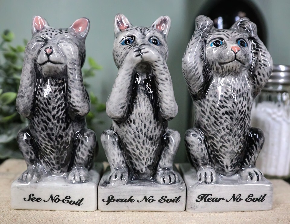 Ebros See Hear Speak No Evil Cats Trio Toothpick Holder Salt And Pepper Shakers Set