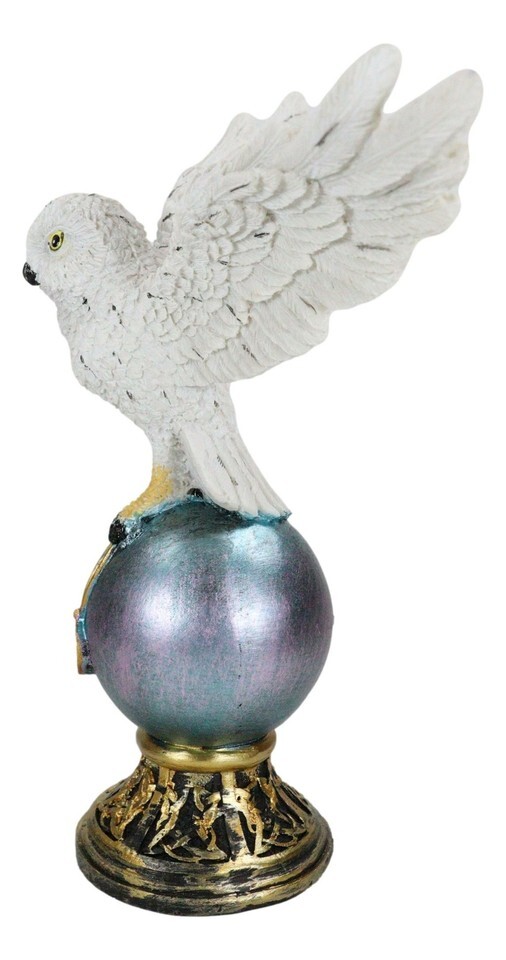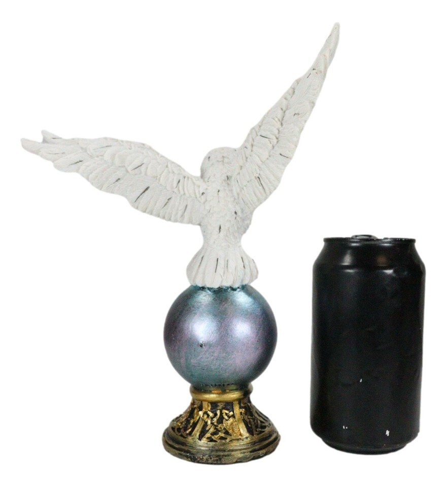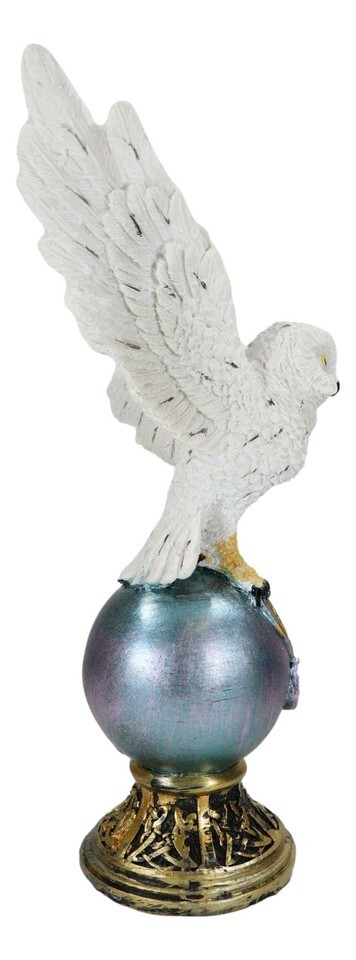 Gothic Snowy Owl Talisman Pentagram Pendant Perching On Gazing Ball Orb Figurine