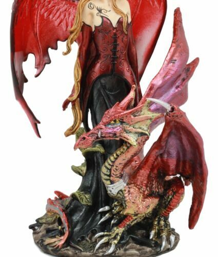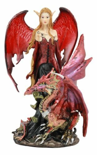 ? This Red Pixie Fairy With Dragon Statue is made of designer composite resin, hand painted and polished individually. Color Tone may vary