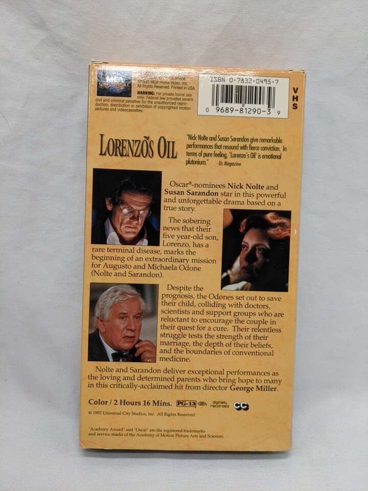 Lorenzos Oil Nick Nolte Susan Sarandon VHS and similar items
