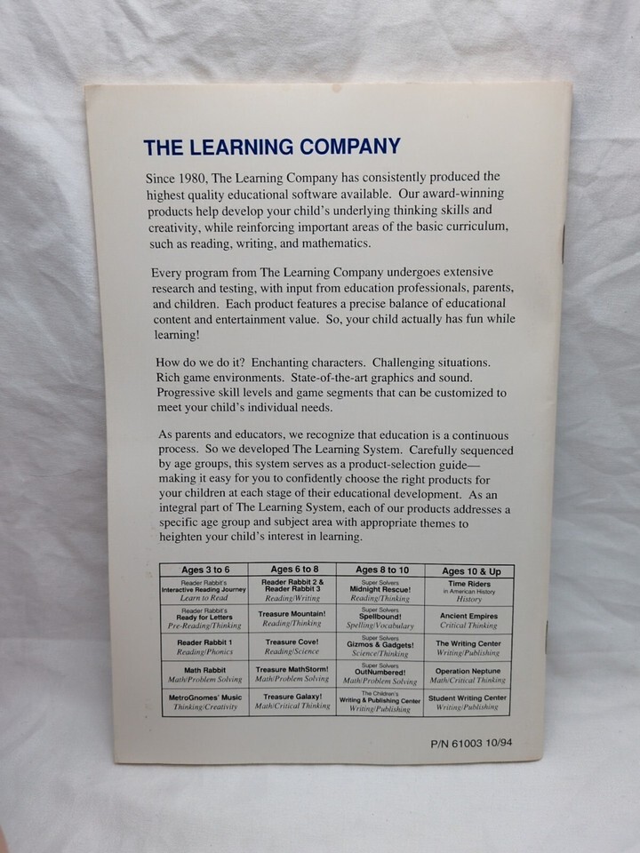 The Learning Company Readers Rabbit Interactive Reading Journey Users Guide